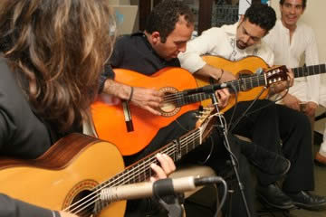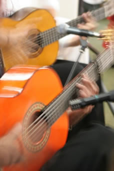 Experience the soft sounds and intricate melodies of the spanish guitar. Jose Tanaka and Gabriel Osuna are two of the most accomplished and experienced guitarists in the United States. Trained in Andalucia the southern province of Spain these two musicians will dazzle you with their virtuosity but more importantly the expression and sensitivity of true artistry is the trademark of this duo's sound. A wide variety of musical styles from traditional flamenco, gipsy rumba, jazz, bossa nova, and latin music as well as your favorite romantic boleros are represented in our repertoire. Perfect for weddings, private and corporate parties and romantic restaurant atmosphere. As experienced musicians we hold ourselves to the highest professional standards. We are there to make things go smoothly and sound good! |